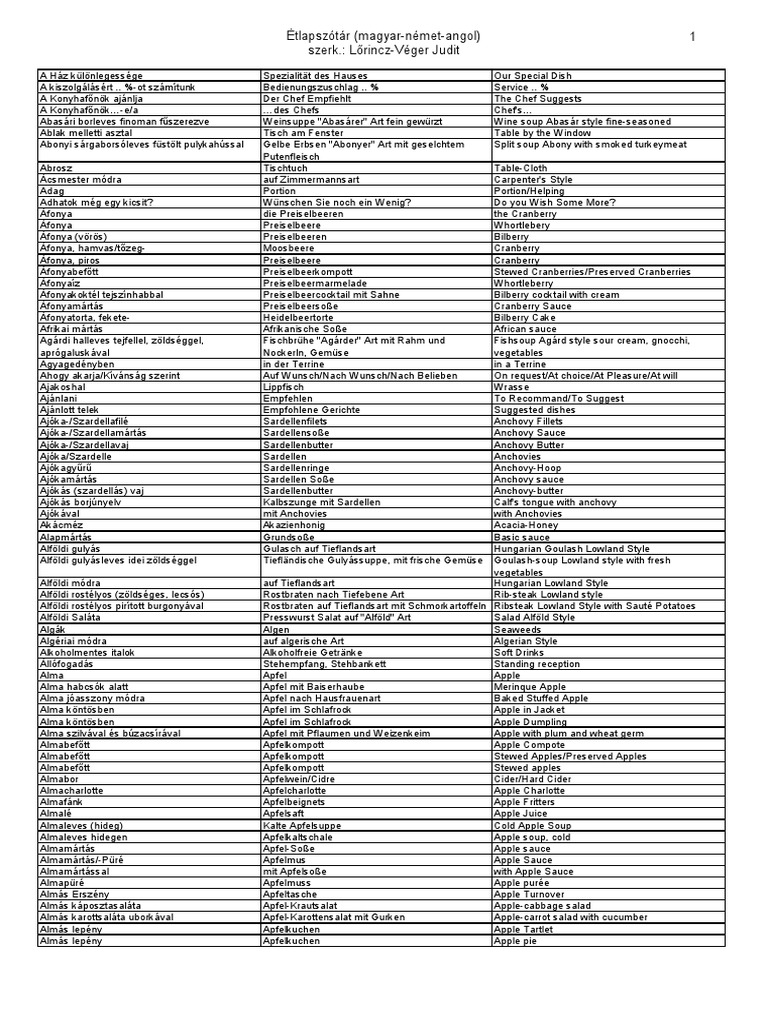 Etlapszotar Magyar Nemet Angol Szerk L Rincz Veger Judit 1